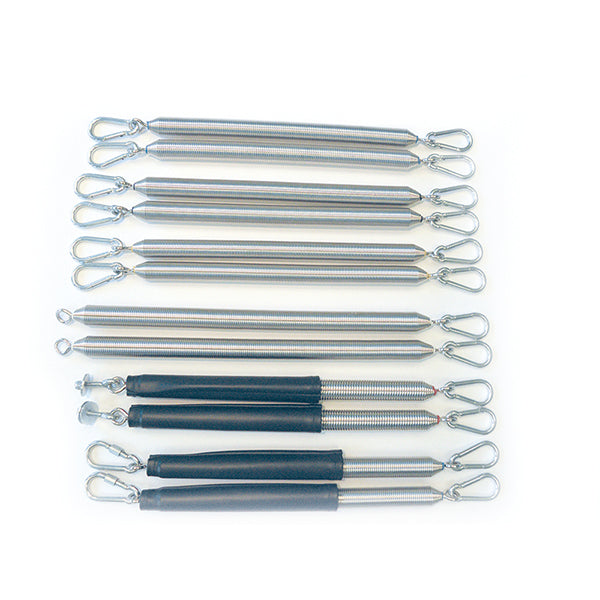 Buy the package and save! A full set of replacement springs for the Merrithew™ Cadillac. All springs are nickel-plated and heat-treated to protect the base material of the spring. This ensures the quality and integrity of its tension throughout its life. We recommend that all springs are changed every two years.